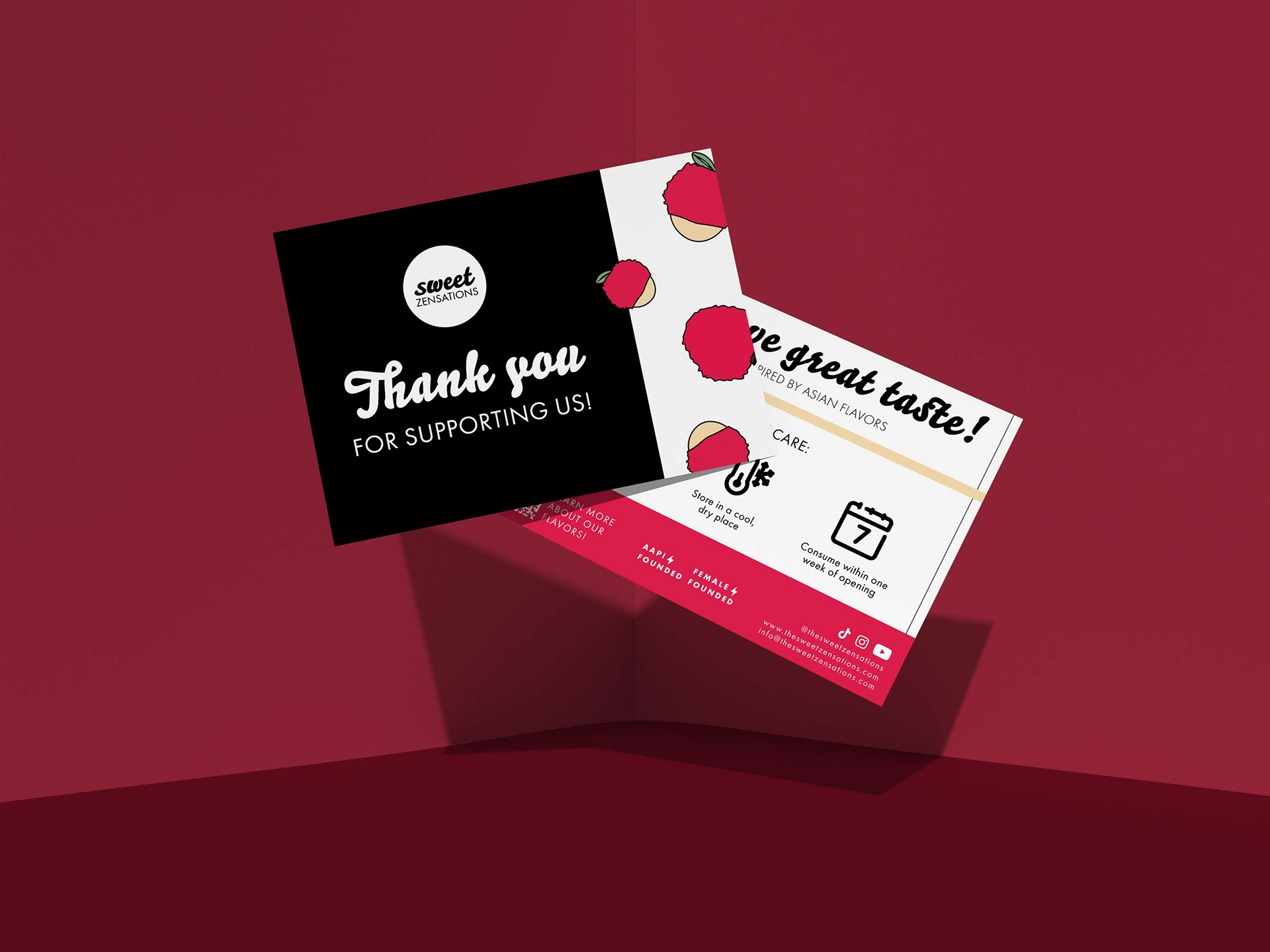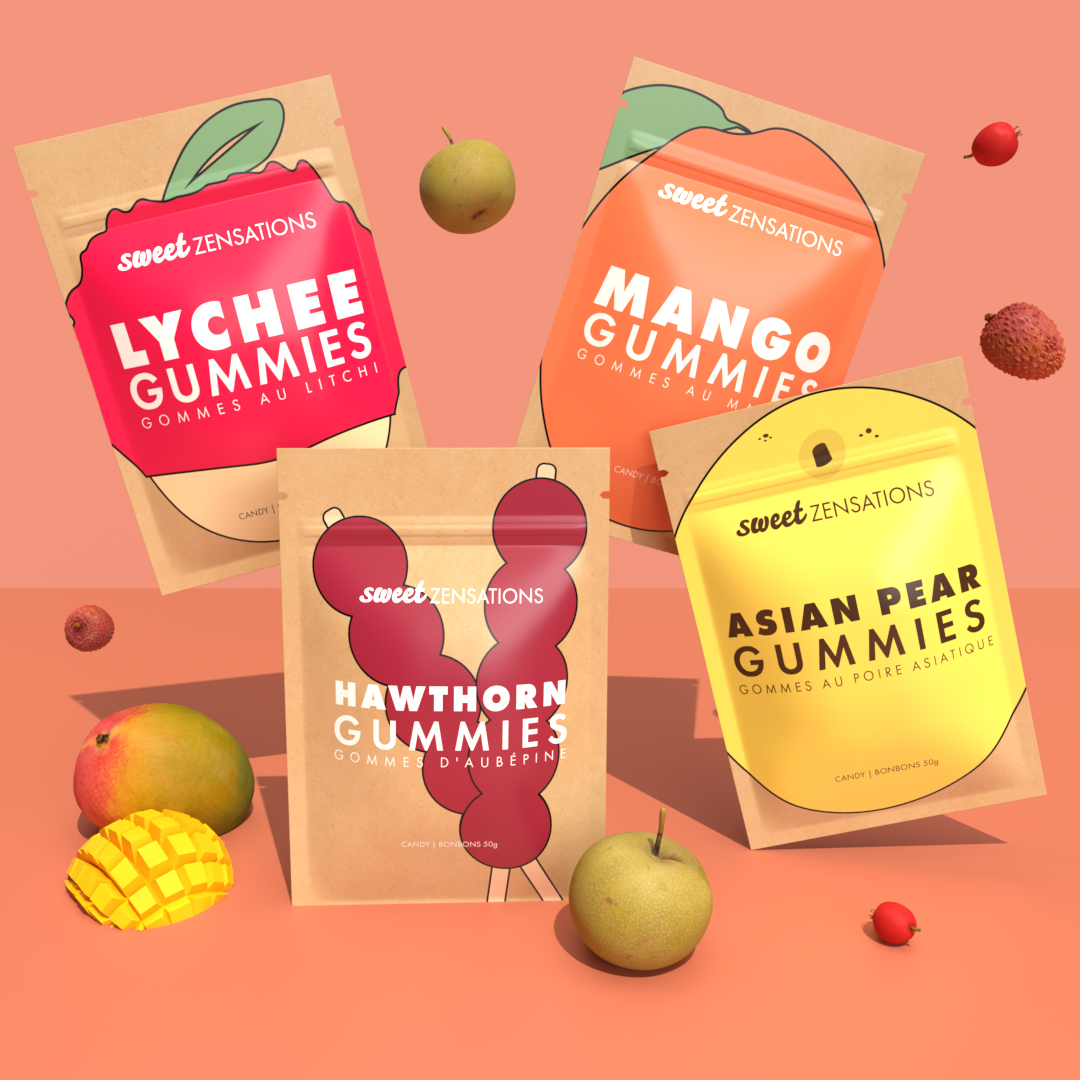 I created the branding, packaging, and promotional materials for a candy company called Sweet Zensations. They make candy inspired by Asian Flavors.